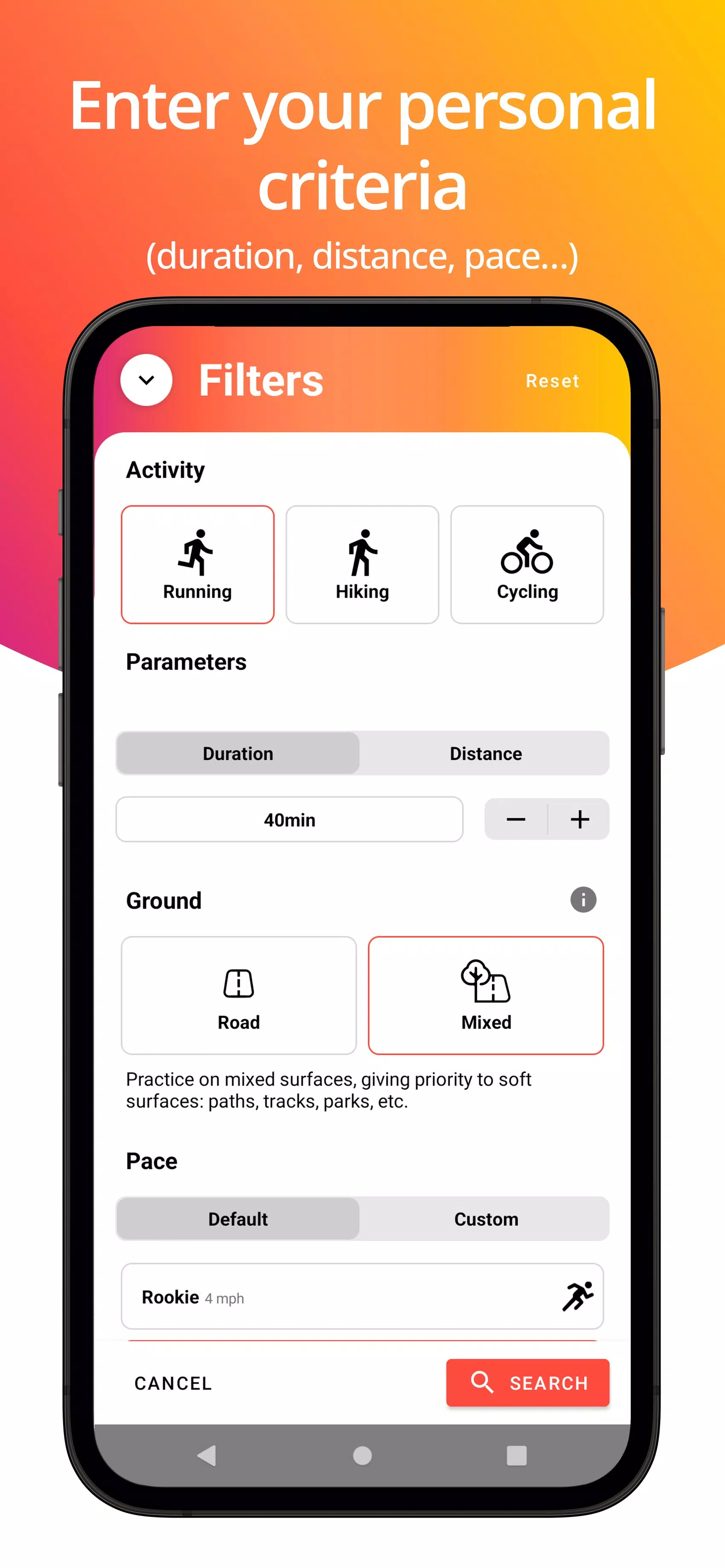 RunnrZ offers routes tailored to your level, taking into account your location, distance preferences, terrain, and pace. This ensures that you get a route that fits your abilities and goals.