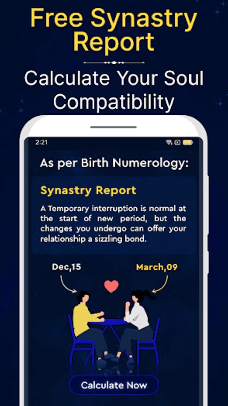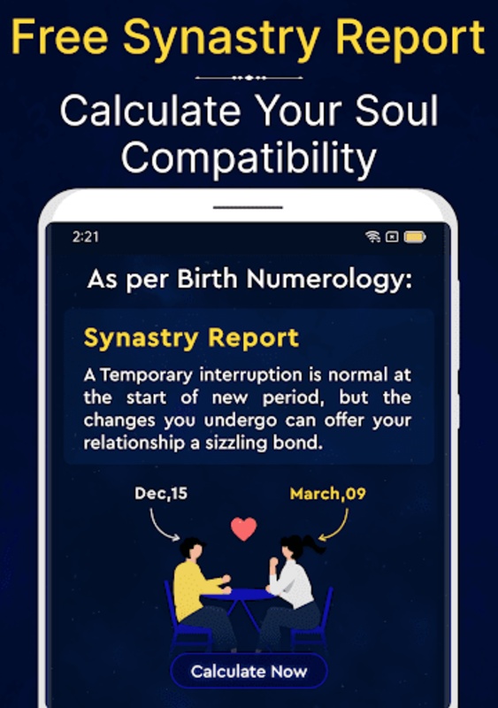 Use the match-making feature to understand the compatibility levels with your partner and loved ones. Input accurate personal information for precise relationship insights and future dynamics.