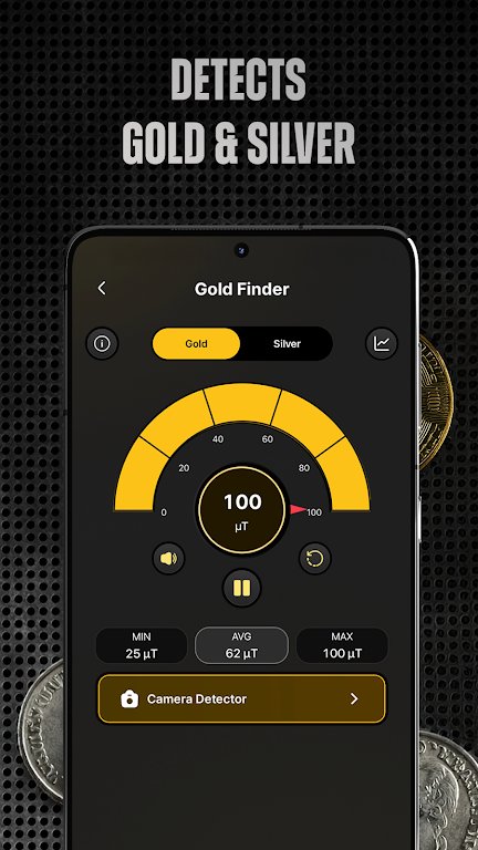 GoldSeeker - Metal Detector is an intuitive and powerful mobile app designed for metal detecting enthusiasts and hobbyists. Whether you're searching for lost treasures, relics, or just exploring the outdoors, GoldSeeker transforms your smartphone into a portable metal detector, offering advanced tools and real-time feedback. With its user-friendly interface and precision features, this app is perfect for beginners and experienced treasure hunters alike. GoldSeeker helps you locate metals buried underground, providing an exciting and engaging way to explore the world around you while discovering hidden treasures.