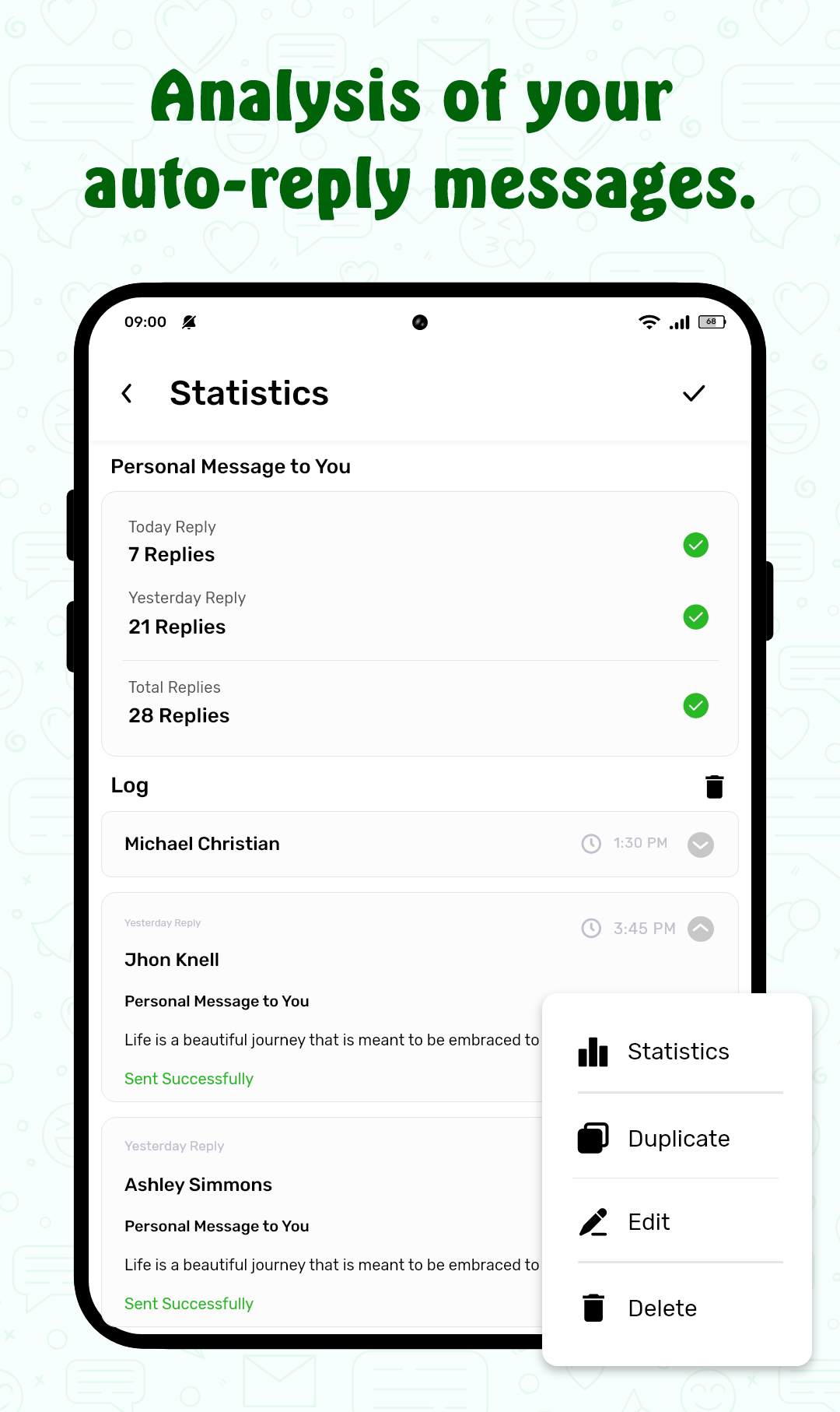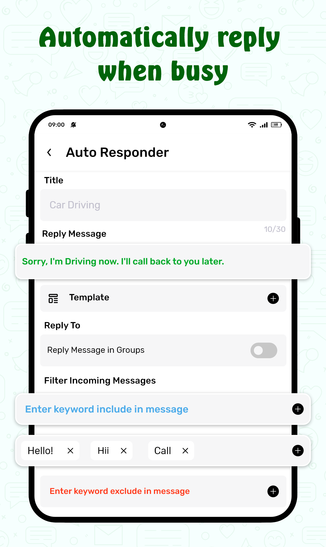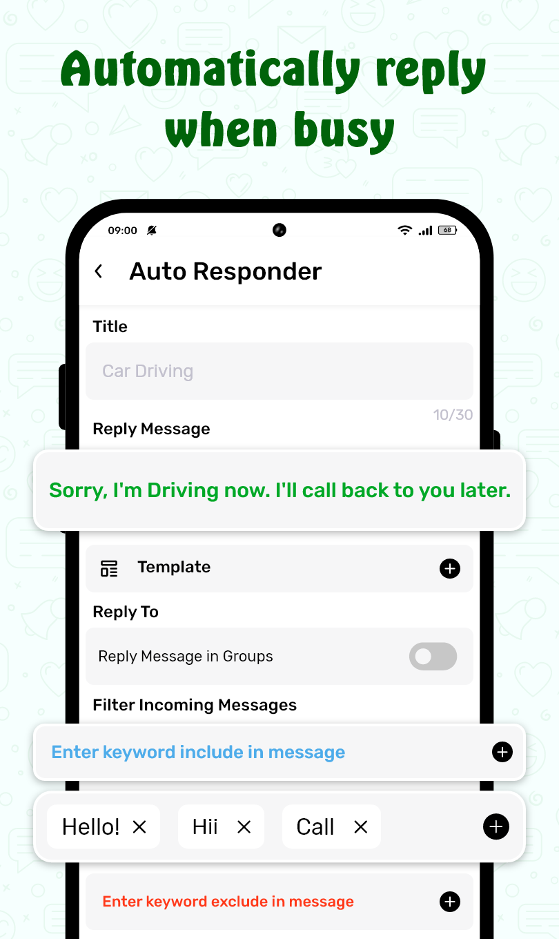 5. Easy Customization and User Interface: With a simple and intuitive interface, users can easily set up and manage their auto-replies. The app allows you to quickly switch between different templates and schedules, making it easy to stay organized and responsive.