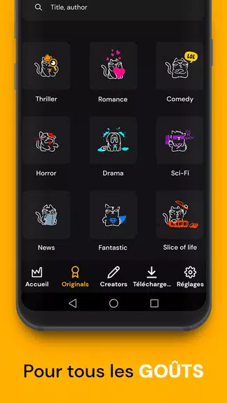 Library management lets you save episodes for offline reading, organize favorites, and resume where you left off.