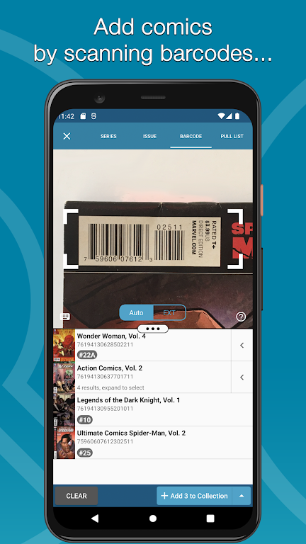 Scan barcodes to quickly add single issues and populate issue data automatically.