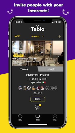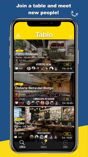 Tablo helps you break routine by connecting you with local people through easily organized social events. With Tablo you can create and join gatherings tailored to your interests, from casual lunches and coffee meetups to themed dinner parties, aperitifs or relaxed weekend brunches. The app lets you set up a social table, invite nearby users, and manage spontaneous or well-planned events through a simple interface, so you can focus on meeting new people and discovering new experiences.