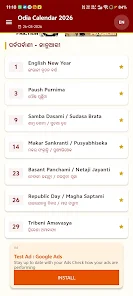 Use Odia Calendar 2026 - Kohinoor to browse months, examine daily panchang entries, and set or manage reminders for events that matter to you. The interface is designed for straightforward navigation and clear presentation of regional observances.