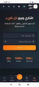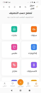 سوق الكل is a marketplace app for buying and selling new and used items locally and nationwide. The app lets users browse categories, contact sellers, manage listings, and track orders through a simple interface.