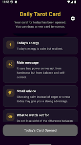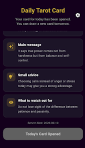 Daily Tarot Card offers daily guidance with a simple single-card draw and clear interpretations for each card. The Daily Tarot Card app helps users reflect, record journal entries, and track past readings using an easy-to-use layout.