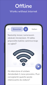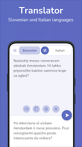 The Slovenian-Italian translator provides fast text and voice translation, a practical phrasebook for common expressions, and an offline dictionary for study and conversation, with example sentences and usage notes to clarify meaning in context.