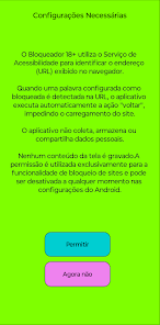Bloqueador 18+ uses the Accessibility service to scan URLs in real time and apply a local, keyword-based block list. Detection and processing happen on-device, and the app does not transmit, store, or share personal browsing data; users enable accessibility access voluntarily and can disable it at any time.