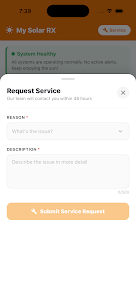 My Solar RX helps homeowners and installers monitor solar PV systems by tracking energy production, viewing historical trends, and receiving system alerts. My Solar RX provides clear dashboards and configurable notifications to support maintenance and performance review. My Solar RX is designed for straightforward setup and ongoing system visibility.