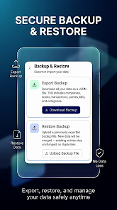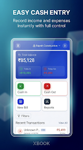 XBOOK: GST Billing & Cashbook offers GST-compliant invoicing with clear tax breakdowns and editable invoice templates. It includes a simple cashbook to record payments, receipts and bank entries and customer and product ledger management with search and edit functions. Daily, monthly and annual reports can be exported to PDF and CSV, and offline mode supports local data entry with secure backup options.
