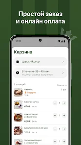 Key features include an intuitive menu to browse dishes and options, a fast ordering flow that enables placing orders in two clicks and paying online, real-time order tracking with push notifications, and built-in discounts and promotions to help you save on meals. The app focuses on quick repeat ordering for Android users and reduces the need for phone calls.