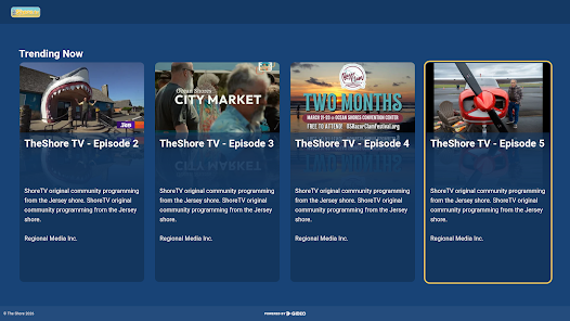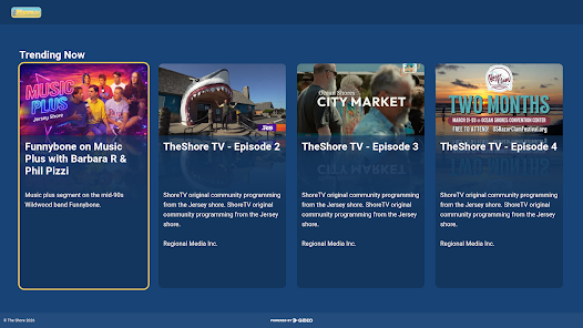 Use The Shore TV to browse schedules, save items for later viewing, and access local reports quickly. Navigation is designed for straightforward discovery of relevant content.