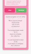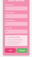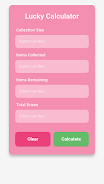 Lucky Calculator is a compact statistical tool that helps players of random-item collection systems measure and plan progress using probability and percentile analysis. The app calculates exact odds for obtaining a target number of items from a given number of draws, places a user's collection within a broader distribution, and estimates how many pulls are likely needed to complete a set using models based on the Coupon Collector's Problem.