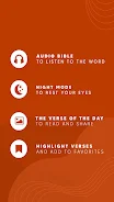 The Young Bible app provides the Updated King James Version (UKJV) in both online and offline modes so you can read without an internet connection. Full audio Bible playback includes controls for volume, speed and tone so you can listen instead of reading. The reading experience is customizable with font size adjustments, day and night display modes, and a return-to-last-verse navigation option. Annotation and organization tools let you add notes to verses, bookmark passages, and save verses into dated lists for easy retrieval. Search the entire text, create shareable verse images, copy and paste passages, or send verses by email or message; a daily verse can also be delivered to your device.