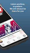 The app requires an internet connection for streaming and may use mobile data. The interface displays current song and show details when available. For technical assistance or content inquiries, use the contact option inside the app.