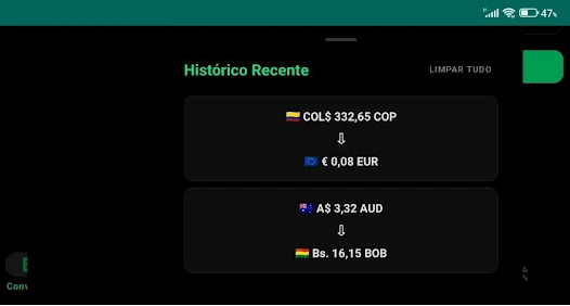 Open Câmbio Boss Classic, choose the source and target currencies, enter an amount, and see the converted result immediately. Use favorites to store pairs you use often and check the history to review past conversions.