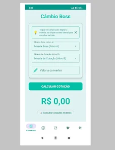 Câmbio Boss Classic is a straightforward currency converter and rate tracker designed for travelers and small businesses. It displays live exchange rates, performs quick conversions, and keeps a history of recent calculations for easy reference.