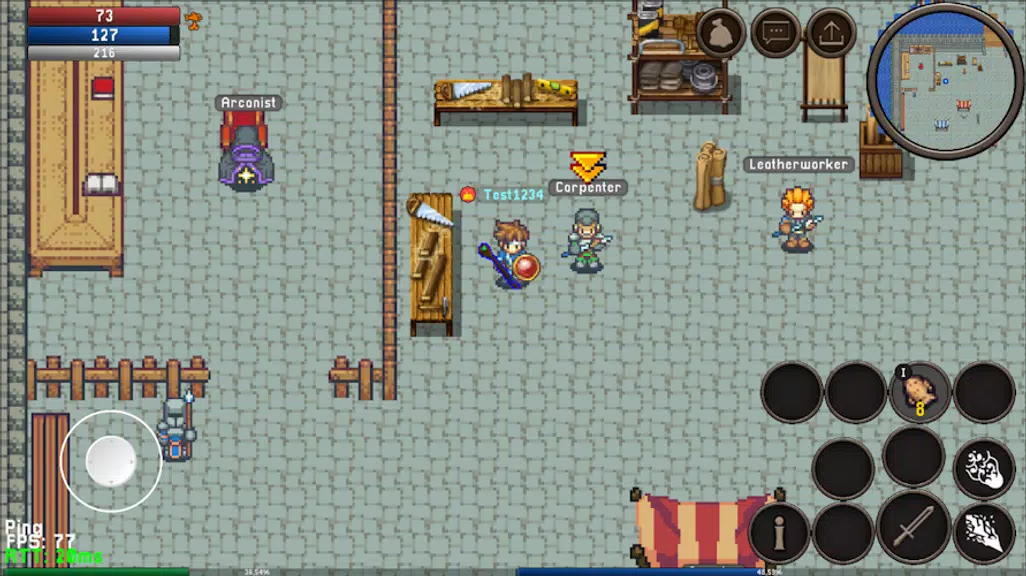 At its heart Reunion Online 2D is about exploration, progression and social interaction. Players move with an on-screen joystick or by touching destinations, select targets to attack, and use skill or recovery buttons to shape encounters. The world supports both solo hunts and organized groups: ally with others to defeat strong monsters and gain bonus experience, or engage in player-versus-player confrontations to test your build. Character and profession levels grant points to distribute among strength, agility, vitality, intelligence and wisdom, while profession points let you raise active skills.