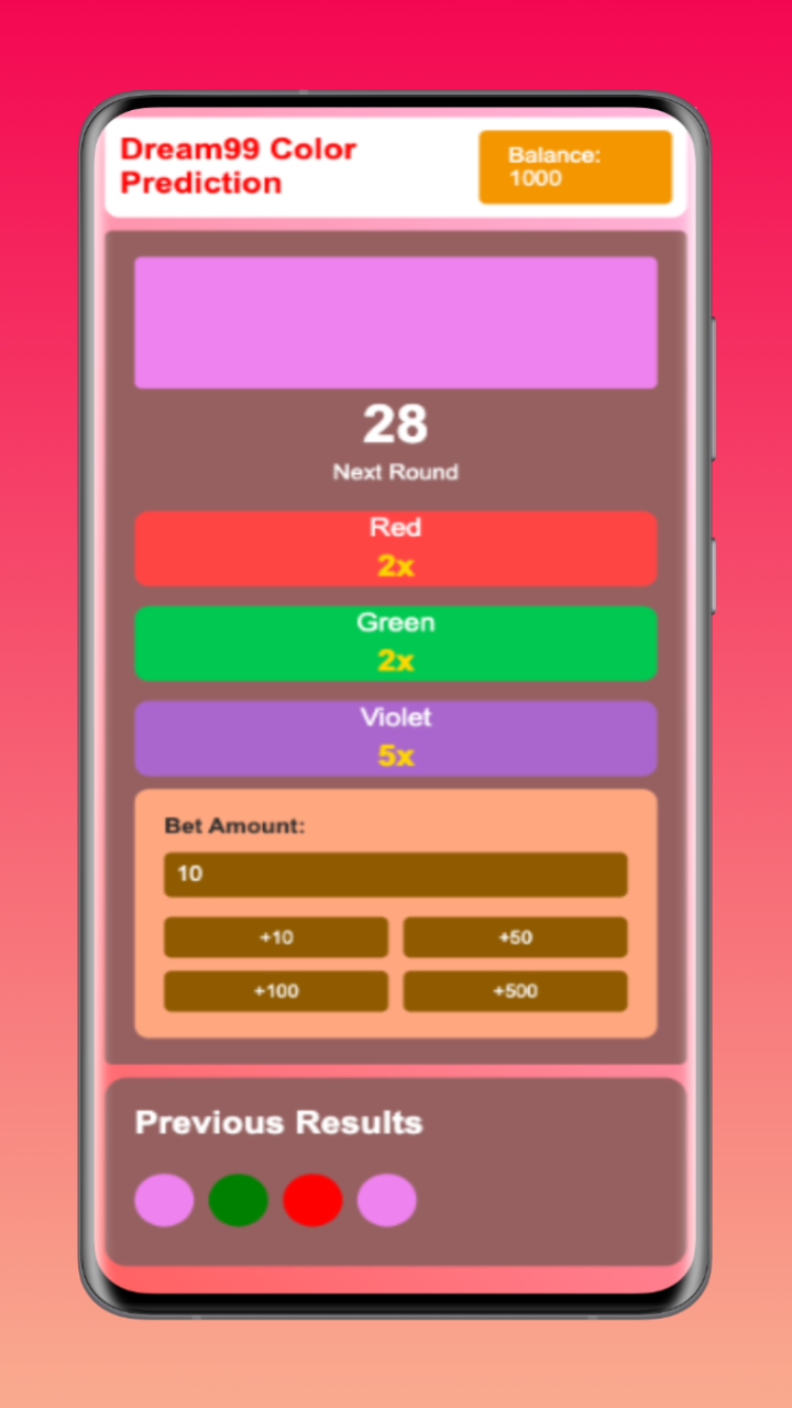 Dream99 is a color prediction app that combines live data and pattern analysis to help players forecast likely colors with more confidence. It provides real-time updates, historical trends, and straightforward analytics so both new and experienced users can spot recurring patterns and make more informed choices. The app uses a clean interface to keep navigation simple while background algorithms highlight useful signals without overwhelming users, and Dream99 includes personalization options to tailor notifications and preferences.