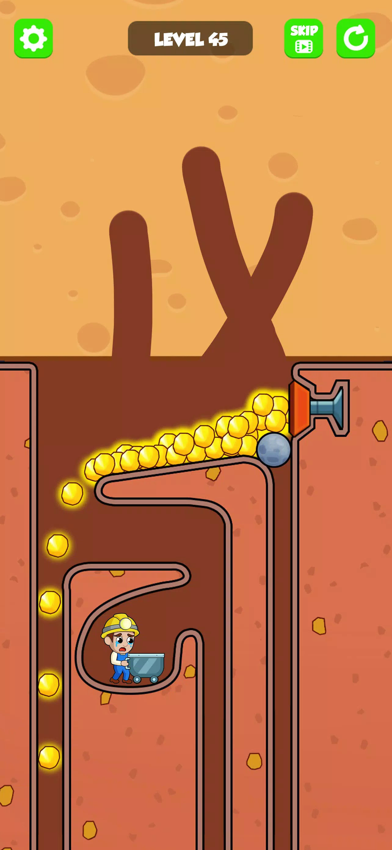 ⭐ Simple touch controls: cut dirt to release stones and block holes with intuitive gestures.