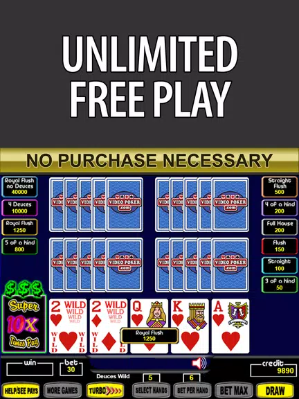 VideoPoker.com brings a full-featured virtual casino to your phone, delivering realistic video-poker gameplay and an extensive library of classic and modern titles that players will want to explore and master. The app includes more than 70 authentic video poker variants, unlimited credits and hands for practice, and built-in training tools to sharpen strategy. Seamless integration with your online account lets members earn Players Club points and track top scores and rewards, while an offline mode keeps gameplay available on flights or road trips. Downloading VideoPoker.com gives both casual players and serious enthusiasts a compact, practice-ready casino experience.