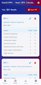 QuickCGPA-Smart GPA Calculator is a streamlined GPA and CGPA tracking app designed for engineering students who need fast, reliable grade calculations. The app lets you enter subject-wise grades with credits, compute semester GPAs instantly and maintain an updated cumulative CGPA so you can monitor progress and spot arrears quickly. A clear dashboard presents GPA charts and trends, and built-in export to PDF plus cloud sync keep your records accessible across devices. Tailored for Anna University users, this utility simplifies academic planning and helps students make informed decisions about their coursework.