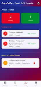 ⭐ Subject-wise grade entry with a standard engineering credit system and an arrear tracker for pending subjects.