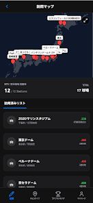 ⭐ Stadium map lets you plot professional ballparks across Japan and enjoy the satisfaction of filling your map with each visit.