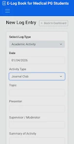 E Log Book For Medical PG's helps postgraduate medical trainees record clinical experiences, procedures, assessments and academic activities in a secure, searchable log. E Log Book For Medical PG's supports structured entries with dates, case details, and supervisor notes to simplify documentation and review. E Log Book For Medical PG's is designed to align with common residency and training requirements and to make progress tracking straightforward.