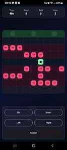 EspSolarPlay puts players on a fast-paced 9x9 grid where the goal is to dash to the top row while sliding hazards move every second. In EspSolarPlay you tap Up, Down, Left and Right to thread across moving lanes, score points for upward progress, and earn a time-based bonus for a clean, uninterrupted finish. Each run in EspSolarPlay gives you 60 seconds and three lives, so careful pacing and quick decisions matter for short, intense sessions focused on route optimization and high-score chasing.