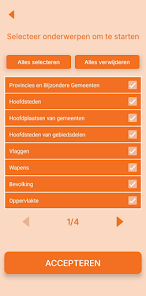 Nederland Geografie Kaartquiz offers customizable difficulty, offline play and a no-image mode so you can practice anywhere. Quizzes cover provinces, capitals, municipalities and special municipalities and include questions about flags, coats of arms, rivers, lakes and islands. You can set the number of options and questions per round, choose categories to focus on specific topics or mix challenges, and review detailed statistics to track progress and improvement.