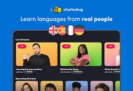 Chatterbug: Language Learning reports a large active community, with more than 100,000 learners participating in live sessions and enjoying the streaming format that has grown in popularity over recent years.