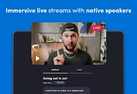⭐ Live interactive video streams where you can ask questions and practice speaking in real time.