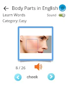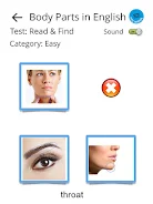 In Learn Body Parts in English learners practice the names of everyday body parts with image-based labels, hear clear recorded pronunciation to support speaking practice, and reinforce basic spelling and recognition through short, gentle exercises and quizzes.