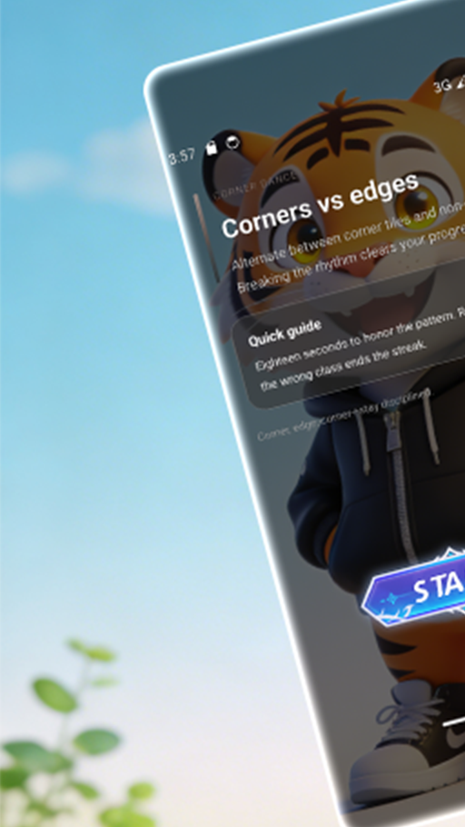 ⭐ Alternation rule requires each tap to switch between corner and non-corner tiles, creating a focused pattern challenge.